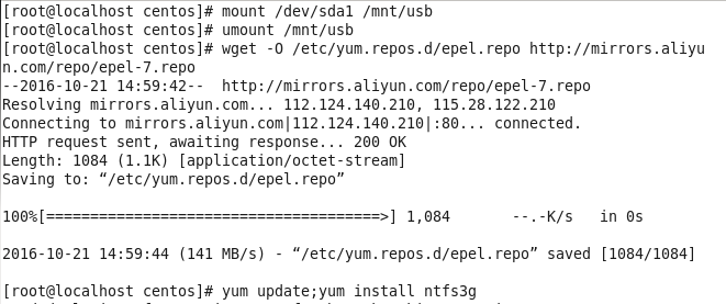 centOS里默认没有ntfs支持,我们安装一个ntfs3g。