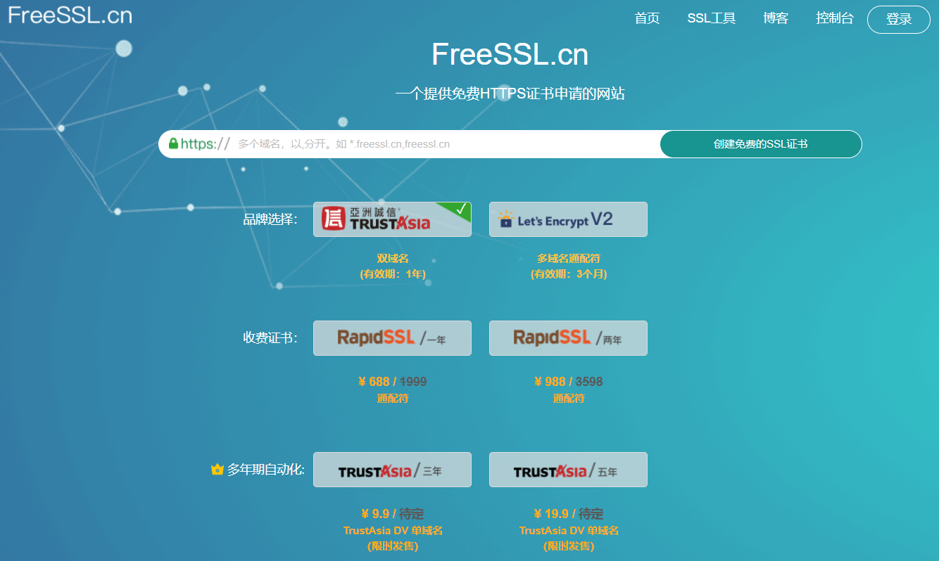 我用到的就是这个网址了 :FreeSSL首页 - FreeSSL.cn一个提供免费HTTPS证书申请的网站