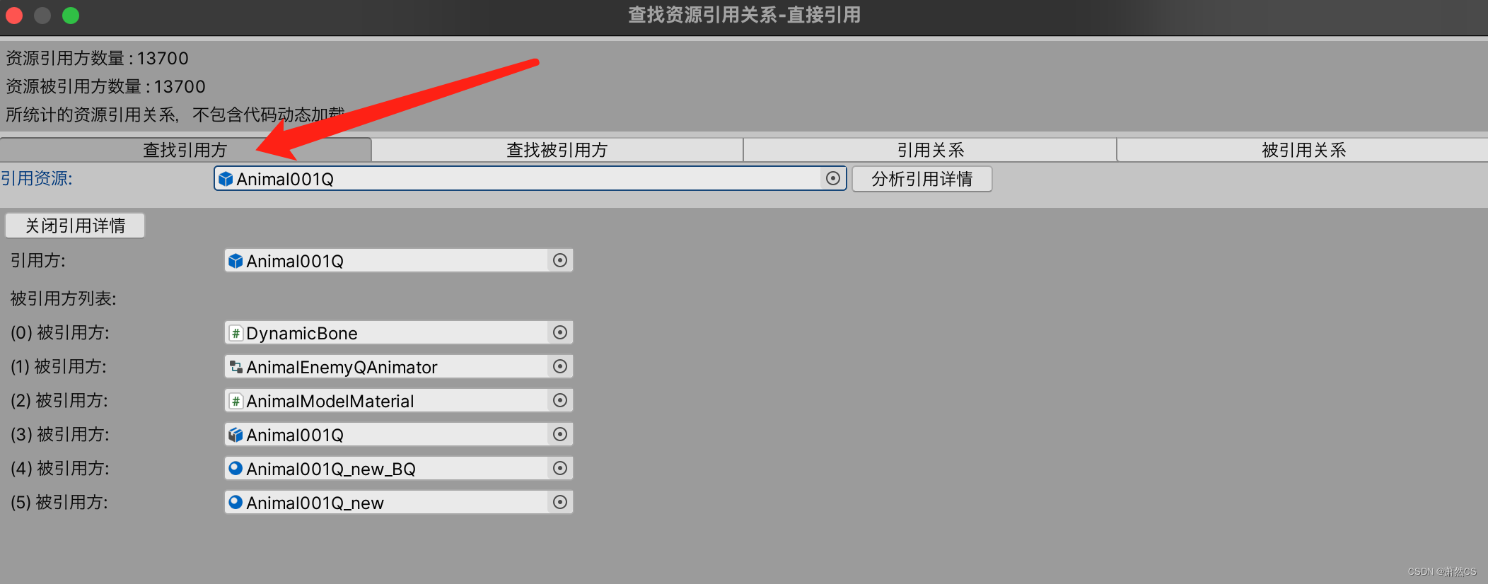 查看所有资源的引用关系,可以按名字搜索,查看引用详情