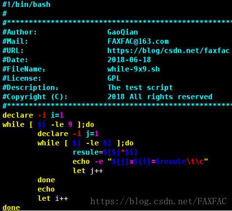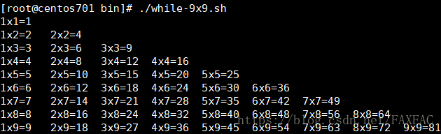 while版9x9乘法表。