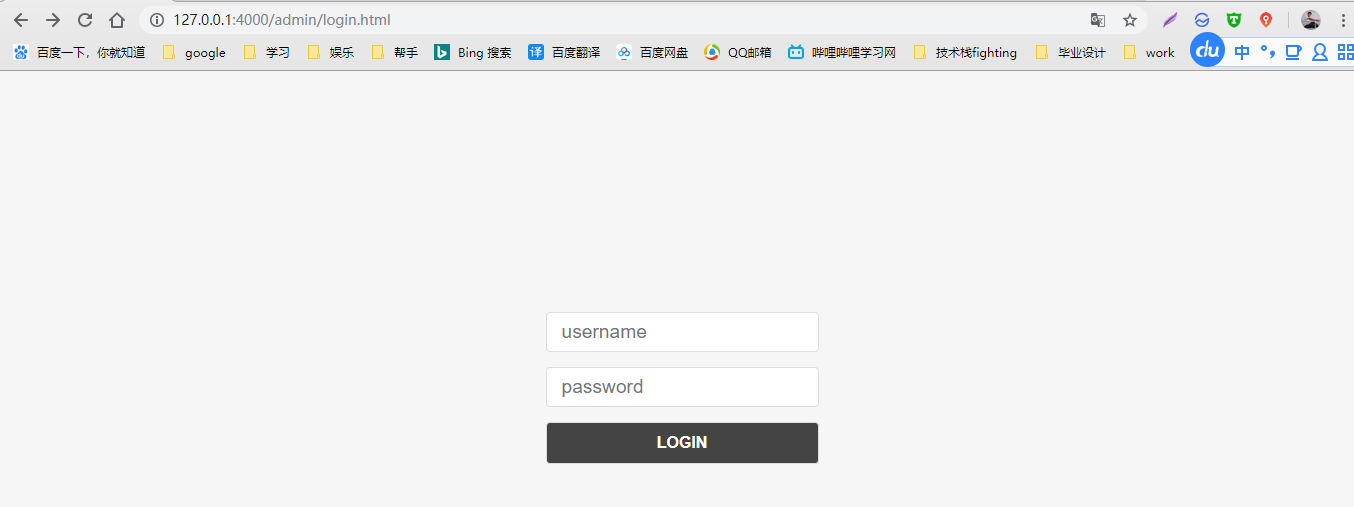 3.测试登录,网页输入localhost:4000/admin