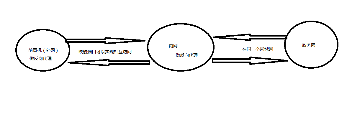 客户的服务器通信情况:前置机与内网服务器可以相互通信(映射),内网与政务网可以通信(局域网),政务网与前置机无法通信。