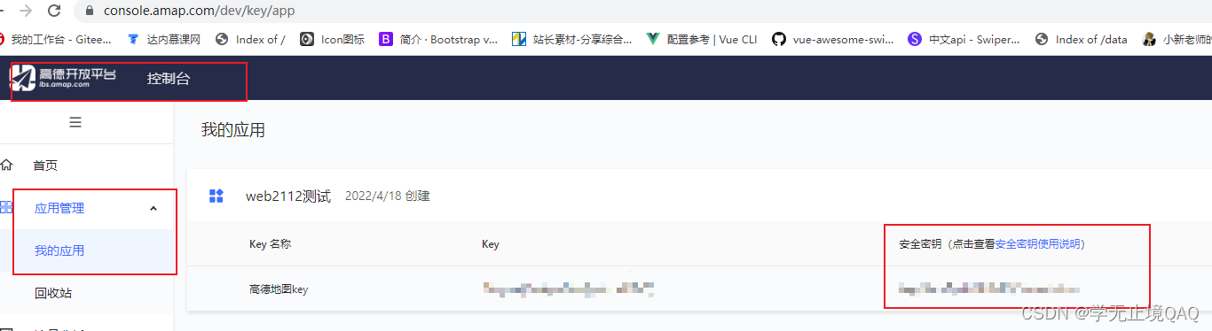 安全秘钥在高德地图控制台->应用管理->我的应用 里面查看