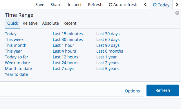 右上角还可以增加时间筛选条件、自动刷新频率等