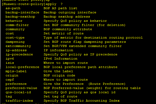 327.在route-policy中,能够用于apply子句的BGP属性有哪些?
