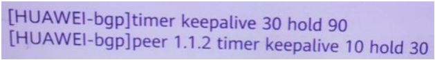 A:Timer取最小值,所以最终结果是peer 1.1.1.2的timer值取keepalive 10 hold 30
