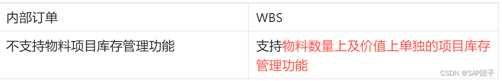 在物料管理功能差异上,内部订单是没有项目库存管理功能的,所谓的项目库存功能是指为项目采购的项目专用件在采购入库后数量及价值上的专买专用。数量上的管理是指物料入库后会带上WBS元素信息,且不同项目间的物料不能混用,如果项目需要用到其他项目上的库存则需要在企业内部管理流程通过后在SAP中进行项目库存调拨操作。而对于财务层面而言,项目库存带来的最大益处是单独计价,针对移动平均价管理的物料,采购进项目库存后不会参与通用库存的移动平均价的计算,在最终的领用消耗环节按照项目此物料单独的采购成本进行归集从而保证项目成本更精准的核算。