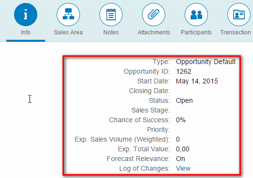 下图是 Opportunity 明细页面的 Info 标签页: