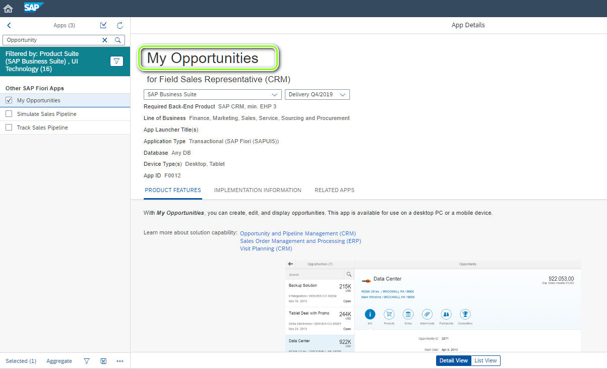 比如 My Opportunities 就是 SAP CRM 领域的一个 Fiori 应用: