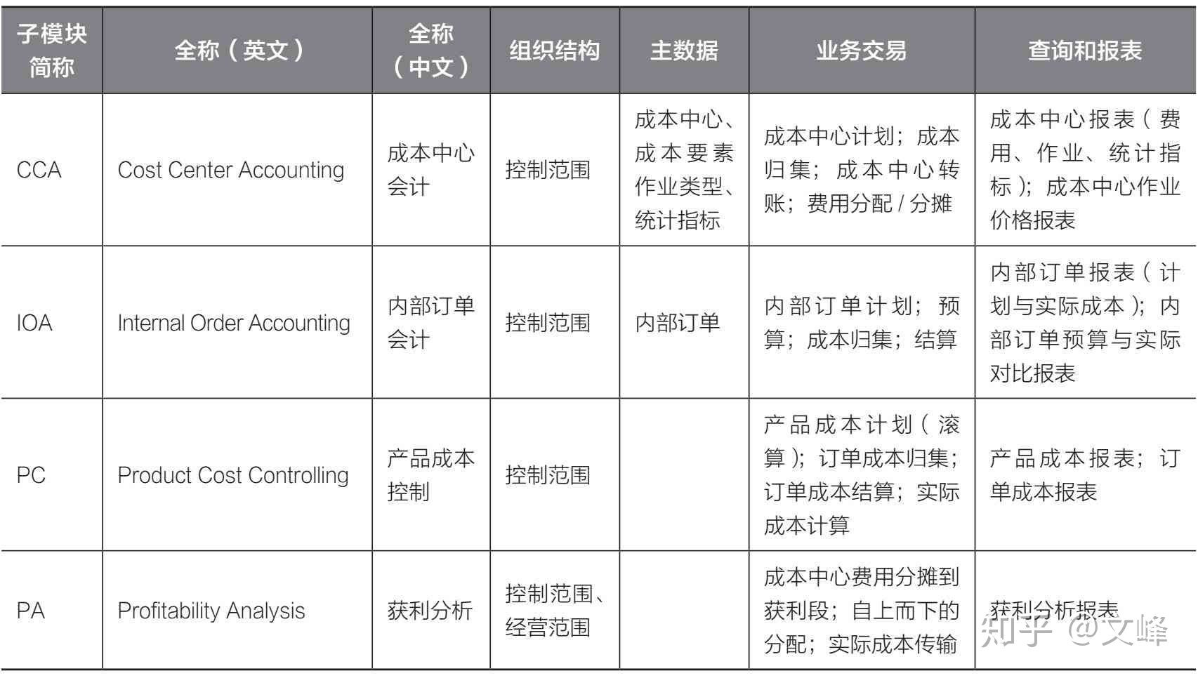 CO模块下还有一个模块为成本要素会计(CEA),由于其功能绝大部分与成本中心会计(CCA)模块功能是重合的或者相仿的,只是变换了成本的视角(从成本对象转换为成本要素),因此不做重点介绍。