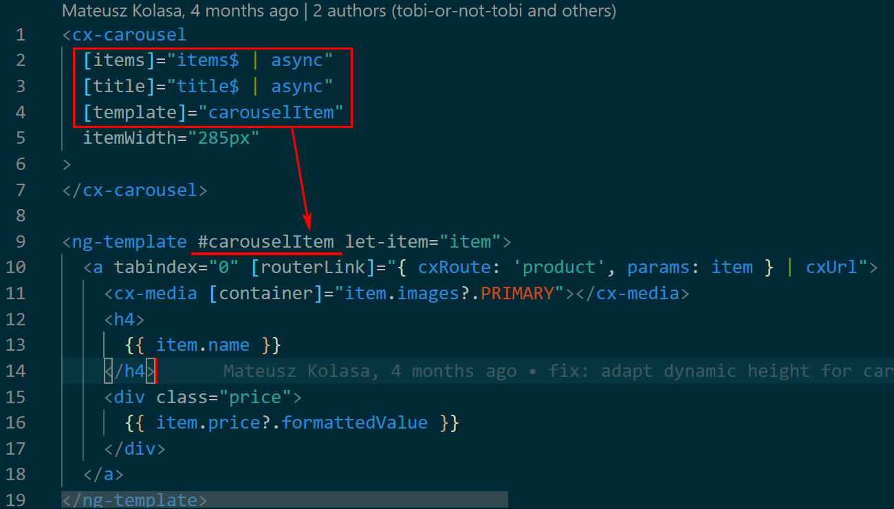 中括号里的items, title和template就是MockCarouselComponent使用@Input()指定的三个属性,等号右边的items , t i t l e , title ,title和carouseItem都是另一个Component本身的属性。