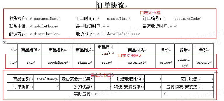 1。使用docx创建自己的的模版,每个表格定义自己的标签。