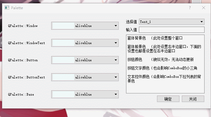 QPalette::Base 主要用于文本输入小部件的背景颜色(QComboBox的下拉列表背景色也会更改