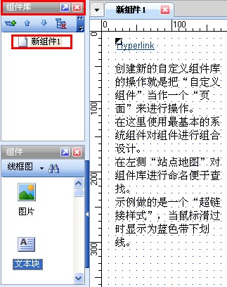 组件(控件)是用于设计线框图的用户界面元素。在组件(控件)面板中包含有常用的控件库,如按钮、图片、文本框等。从组件面板中拖动一个控件到线框图区域中,就可以添加一个组件。组件可以从一个线框图中被拷贝(Ctrl+C),然后粘贴(Ctrl+V)到另外一个线框图中。组件面板工具栏中可以加载已有组件库、创建新组件库、编辑当前组件库、或更新组件库,也可以对组件进行搜索。