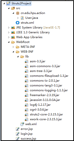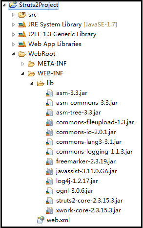 <1>导入Struts2 框架所需相关jar 包,点此下载