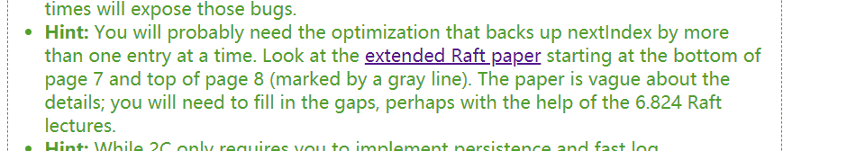 对于 Unreliable 实验原本有 hint 需要我们优化 log back 的算法 实现日志主从之间快速同步