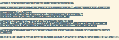 我们选择flannel作为Pod网络插件,所以上面的命令指定–pod-network-cidr=10.244.0.0/16
