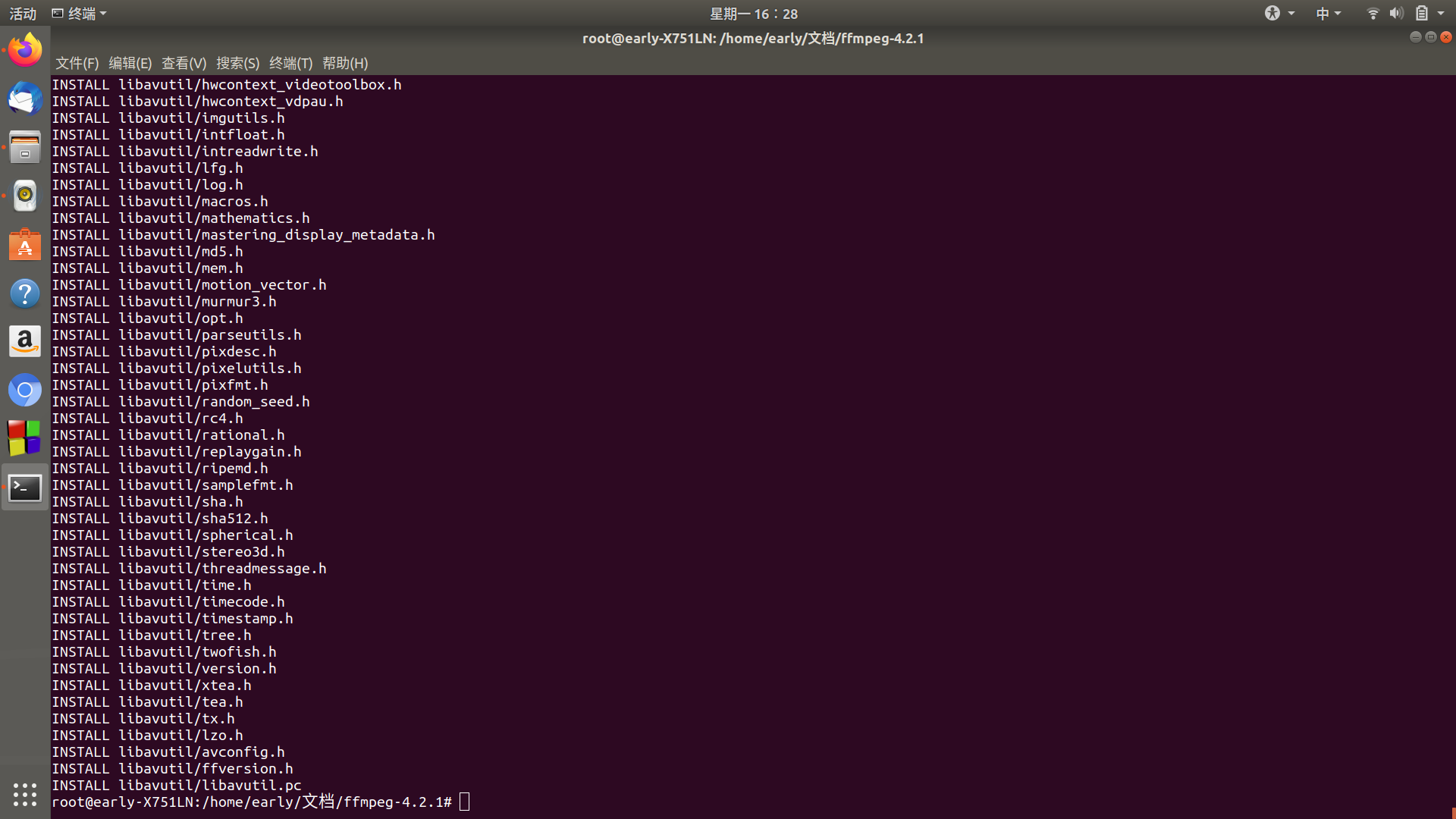 4 编写完成,将脚本移动至解压好的ffmpeg文件的根目录,在控制台输入./configure_build.sh就开始编译了,喝杯茶的功夫即可完成