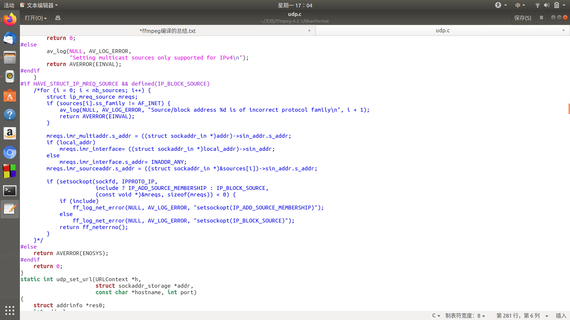 解决方法:就是将你ffmpeg/libavformat/udp.c这四段注释了,然后再编译就可以通过了