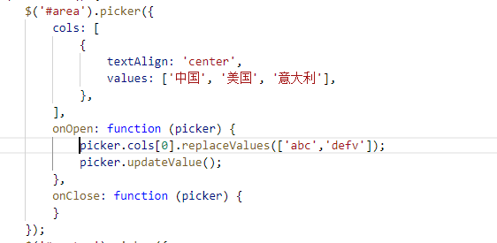 以上就是淡定水池最近收集整理的关于前端框架SUI Mobile中picker多级联动事件,更新cols中values的值的全部内容,更多相关前端框架SUI内容请搜索靠谱客的其他文章。
