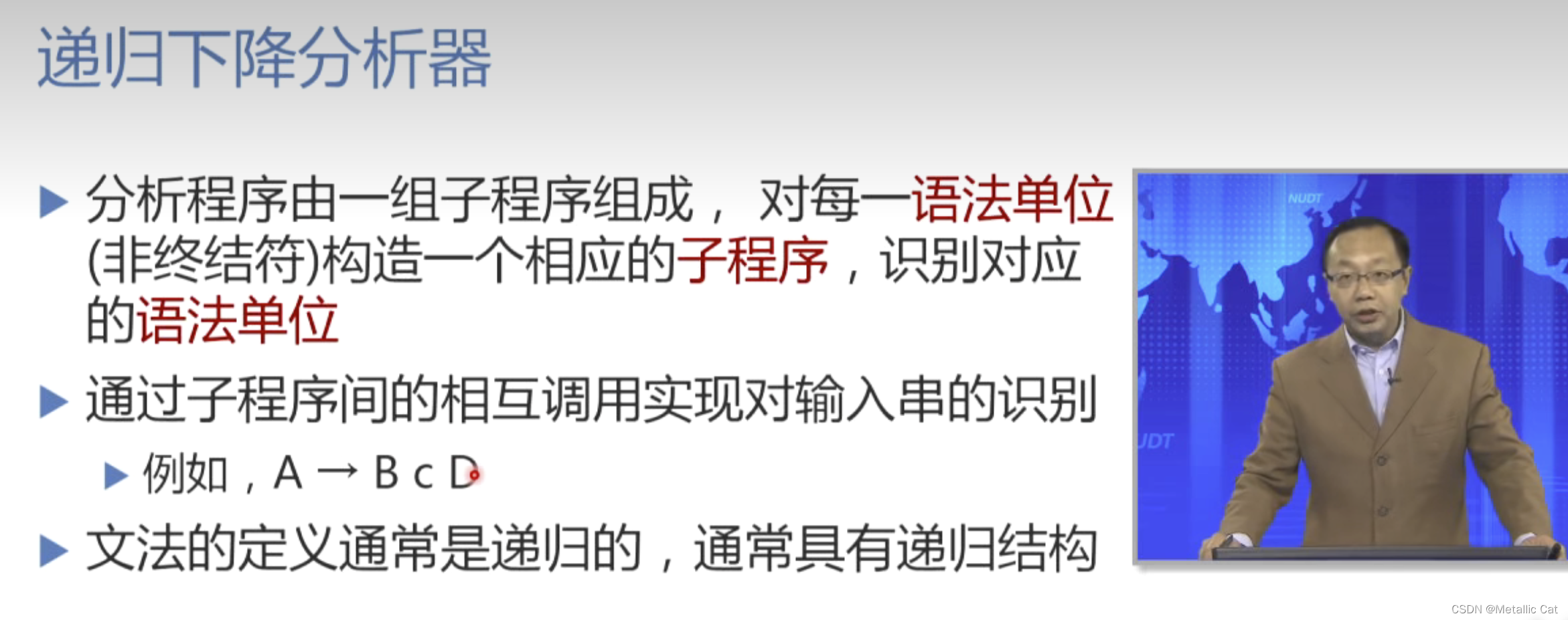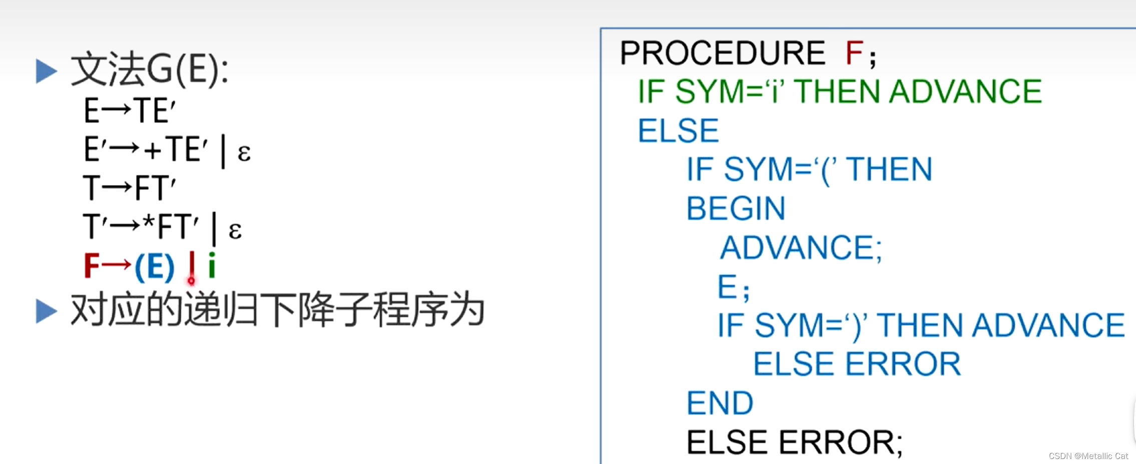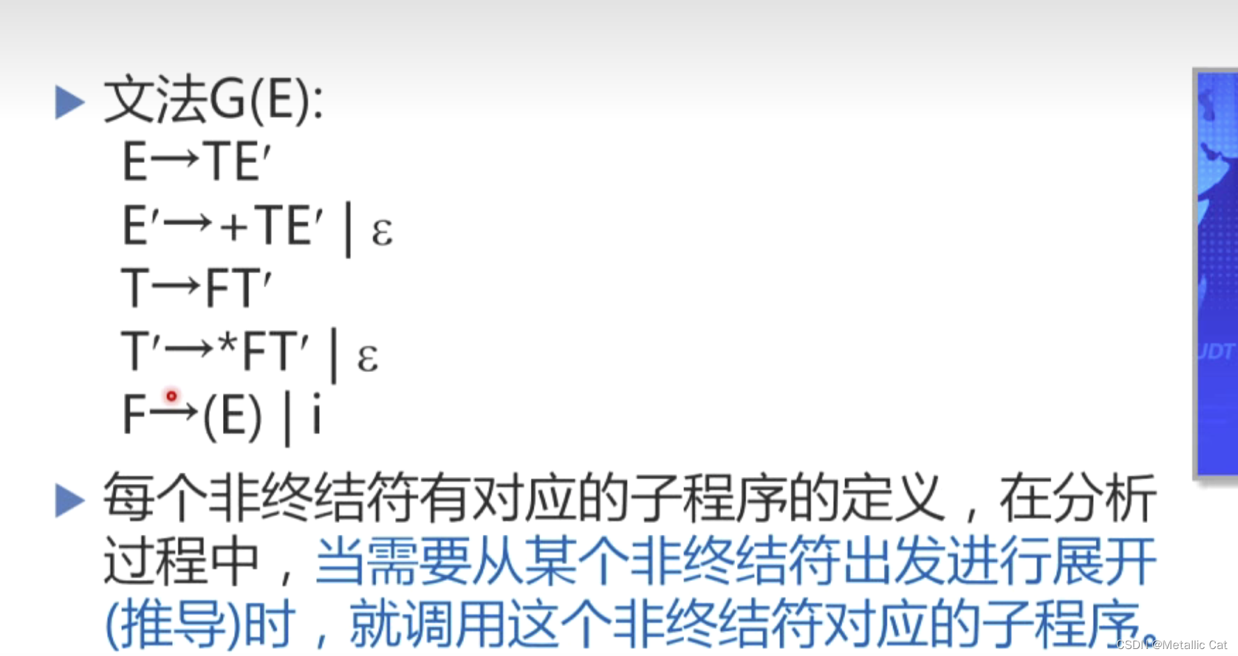 1.一个非终结符的展开就等价于调用这个非终结符对应的语法分析子程序