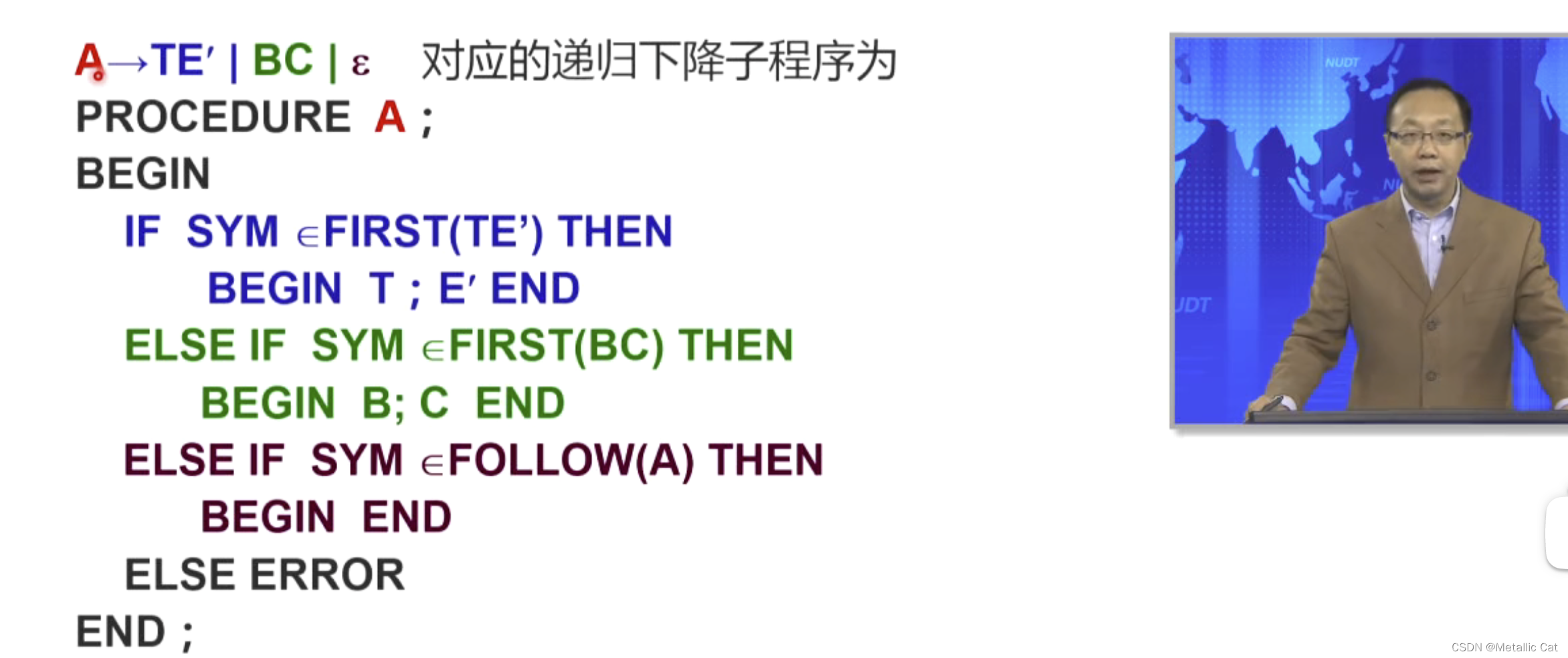 1.一个非终结符对应的子程序就用这个非终结符本身来命名,比如非终结符A的子程序的命名就是A本身