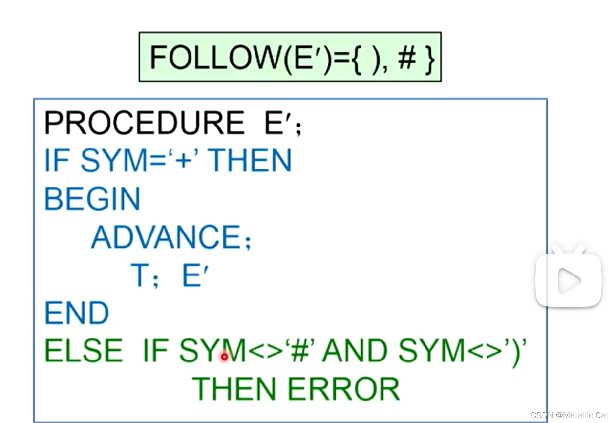 1.绿色部分是在检验当前输入符号是不是属于非终结符的FELLOW集合