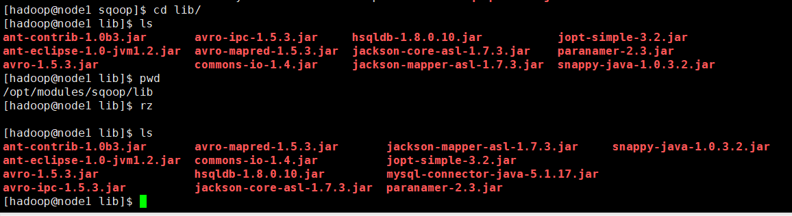 在/opt/modules/sqoop/lib目录下加入mysql的jdbc驱动包