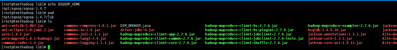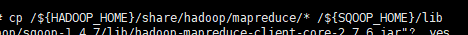 3.1 拷贝hadoop的相关jar包到sqoop的lib目录下(一劳永逸,如果hadoop都换了那么sqoop估计也要换了。。。)