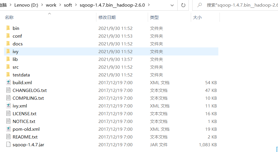 这里我下载使用的是1.4.7版:Index of /dist/sqoop/1.4.7