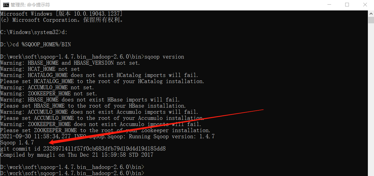 解压后,配置环境变量SQOOP_HOME=sqoop解压后地址,path增加新配置%SQOOP_HOME%/bin