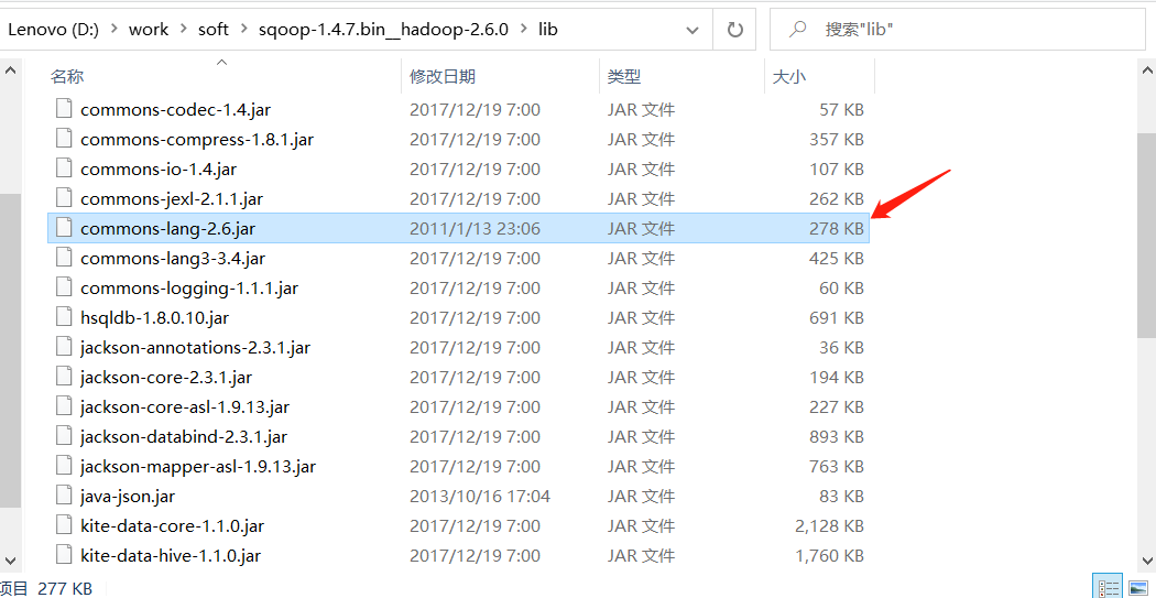 缺少commons-lang包,这里我们下载并放到%SQOOP%/lib下
