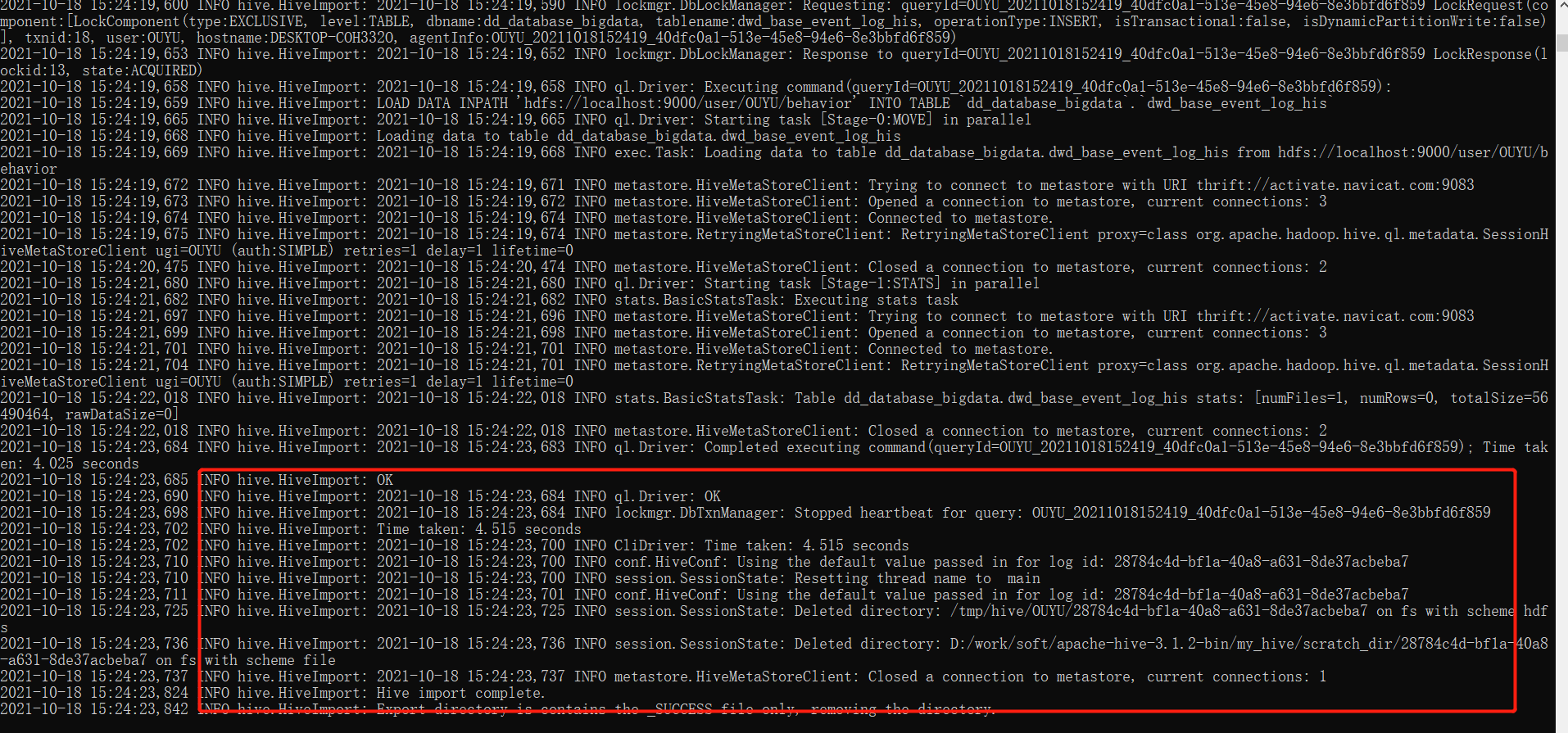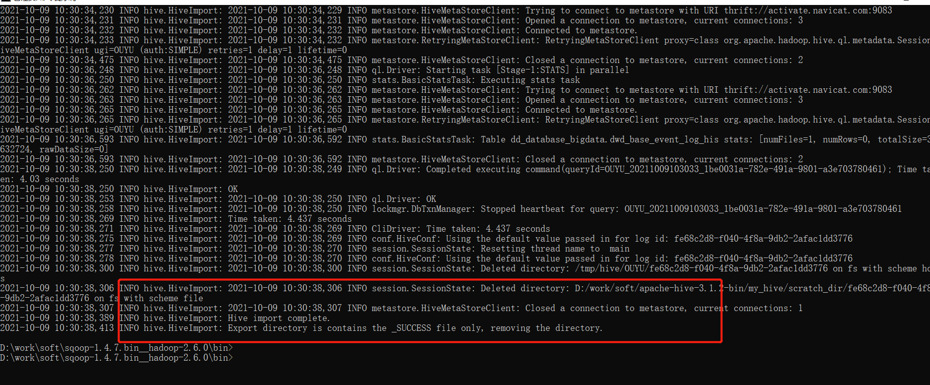 这个是linux写法,具体windows怎么做,很疑惑。我尝试将hive lib下的包均放到sqoop lib下,各种尝试后发现不行。最后重新了下hive,莫名成功了。。。。毕竟自己搭建的环境,兼容性没这么好啊。