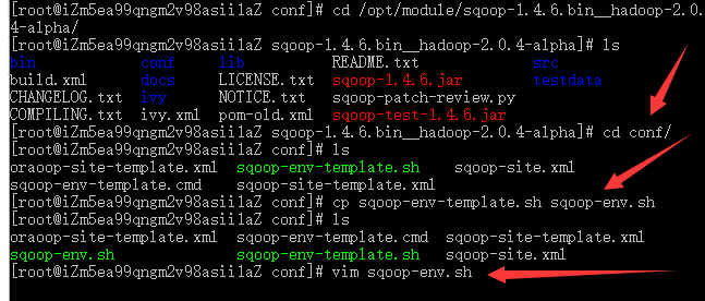 进入解压目录下的conf目录下,将sqoop-env-template.sh复制一份重命名为sqoop-env.sh