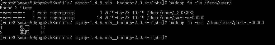 使用 opt 格式的文件打包 sqoop 命令,然后执行