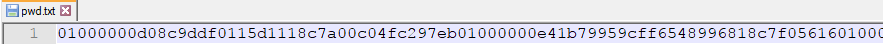 上图显示 ConvertFrom-SecureString 命令生成的加密字符串,我们把它保存到文本文件中: