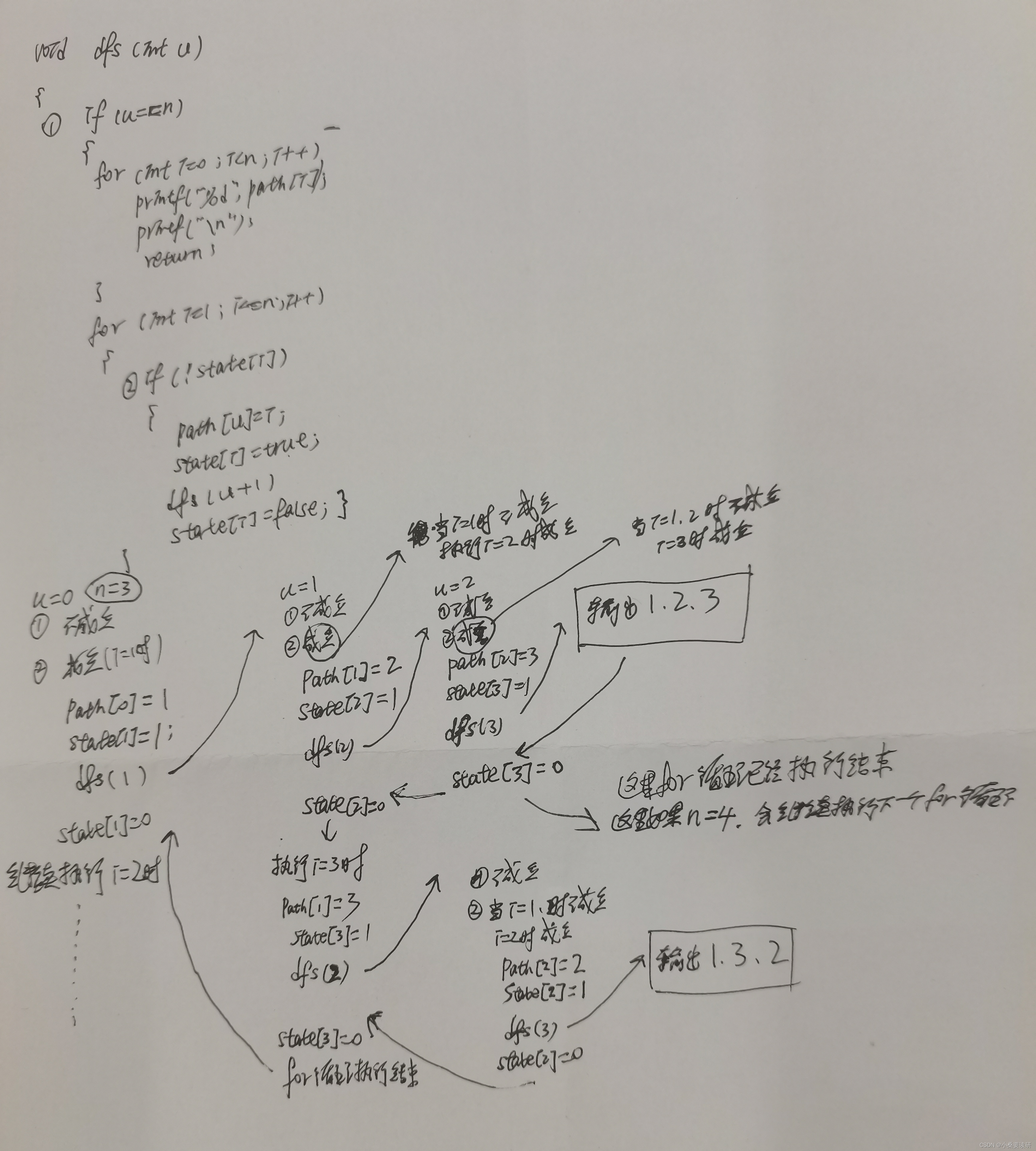 state[i]=false;//回溯 将数字i取出 并把状态改变