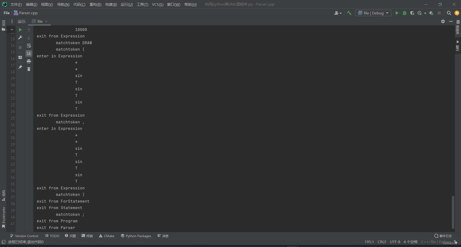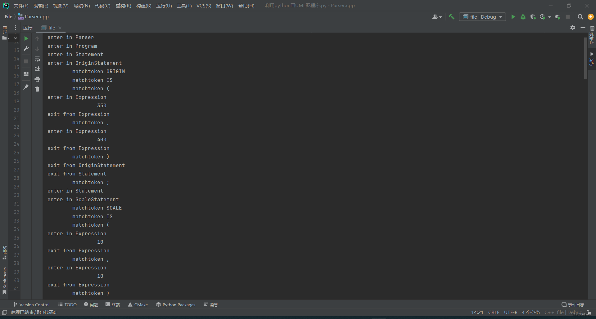根据绘图语言文法和表达式树的产生式,我们可以设计一个Parsers类,在类里利用迭代实现文法和表达式树的产生。
