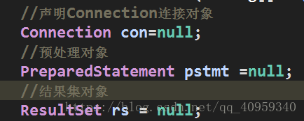 创建的时候是:Connection连接→PreparedStatement预处理→ResultSet结果集;