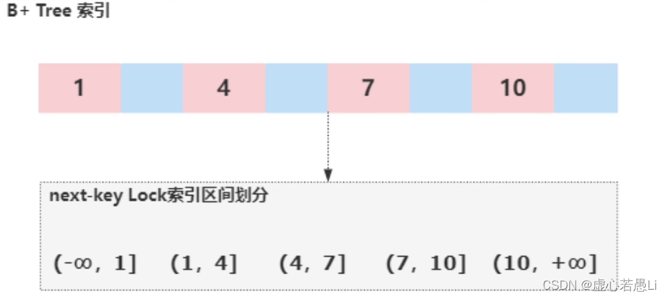 如下的一条排他锁SQL且id是索引,会锁住(4,7] ,(7,10] ,(10,+∞] 这些区间。