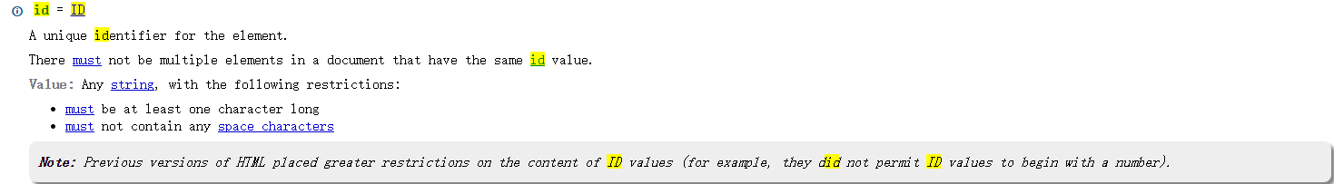 W3C规范链接:http://www.w3.org/TR/html-markup/global-attributes.html#common.attrs.id