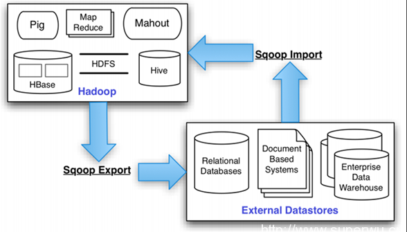 Sqoop是一款开源的工具,主要用于在Hadoop(Hive)与传统的数据库(mysql、postgresql...)间进行数据的传递,可以将一个关系型数据库(例如 : MySQL ,Oracle ,Postgres等)中的数据导进到Hadoop的HDFS中,也可以将HDFS的数据导进到关系型数据库中。Sqoop项目开始于2009年,最早是作为Hadoop的一个第三方模块存在,后来为了让使用者能够快速部署,也为了让开发人员能够更快速的迭代开发,Sqoop独立成为一个Apache项目。