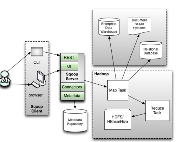 - sqoop2的缺点,架构稍复杂,配置部署更繁琐。