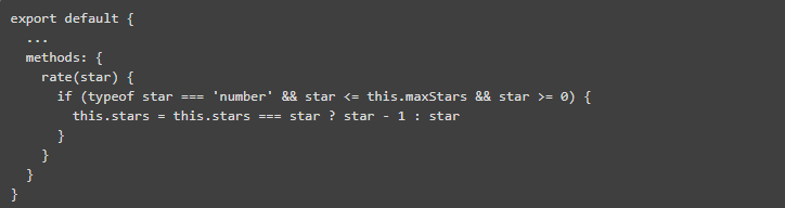 如果我们想要彻底解决,我们还应该添加一个控制层,以确保 star 从来没有被赋予一个没有意义的值。我们需要确保 star 永远不会小于 0,也绝不会比 maxStars 更大,而且它是一个合适的数字。