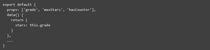 最后,我们定义了一个级别属性,并将其作为 star 数值属性中的值传递给它。我们之所以这样做,不是直接使用级别属性,而是因为级别改变,值会发生变化。在 Vue.js 中,props 从父级传递给子级,而不是反过来传递,所以你不会改变父级的状态。这将违背 单向数据流 的原则,使事情难以调试。这就是为什么你不应该试图改变子组件内的 prop。相反,定义一个使用 props 的初始值作为自声的本地数据属性。