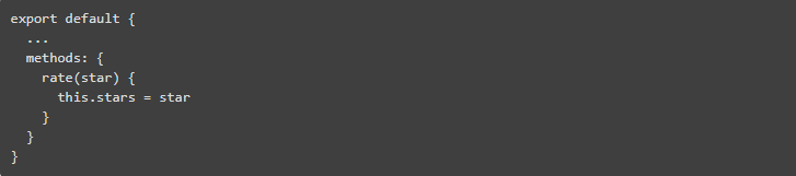 回到我们的 rate 方法。我们需要将 stars 变为 clicked 元素的索引,所以我们通过 @click 指令的索引,可以做到以下几点: