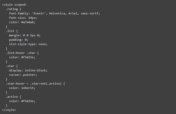 最后,添加一些HTML代码到你的Rating.vue文件: