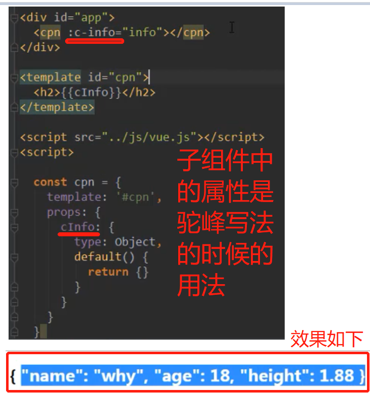 子组件的props写成驼峰命名时的写法稍有不同