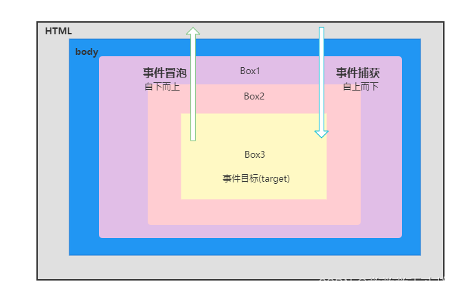 注意:在JavaScript中 ,并非所有的事件都可以冒泡,像blur、unload、load等事件就不能冒泡
