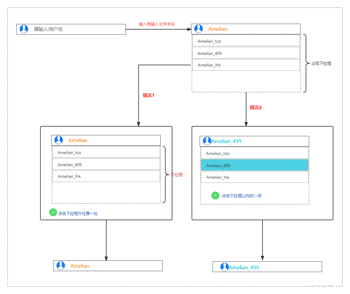 - ③:点击下拉款子元素之后,关闭记录此次选择的值并关闭下拉框